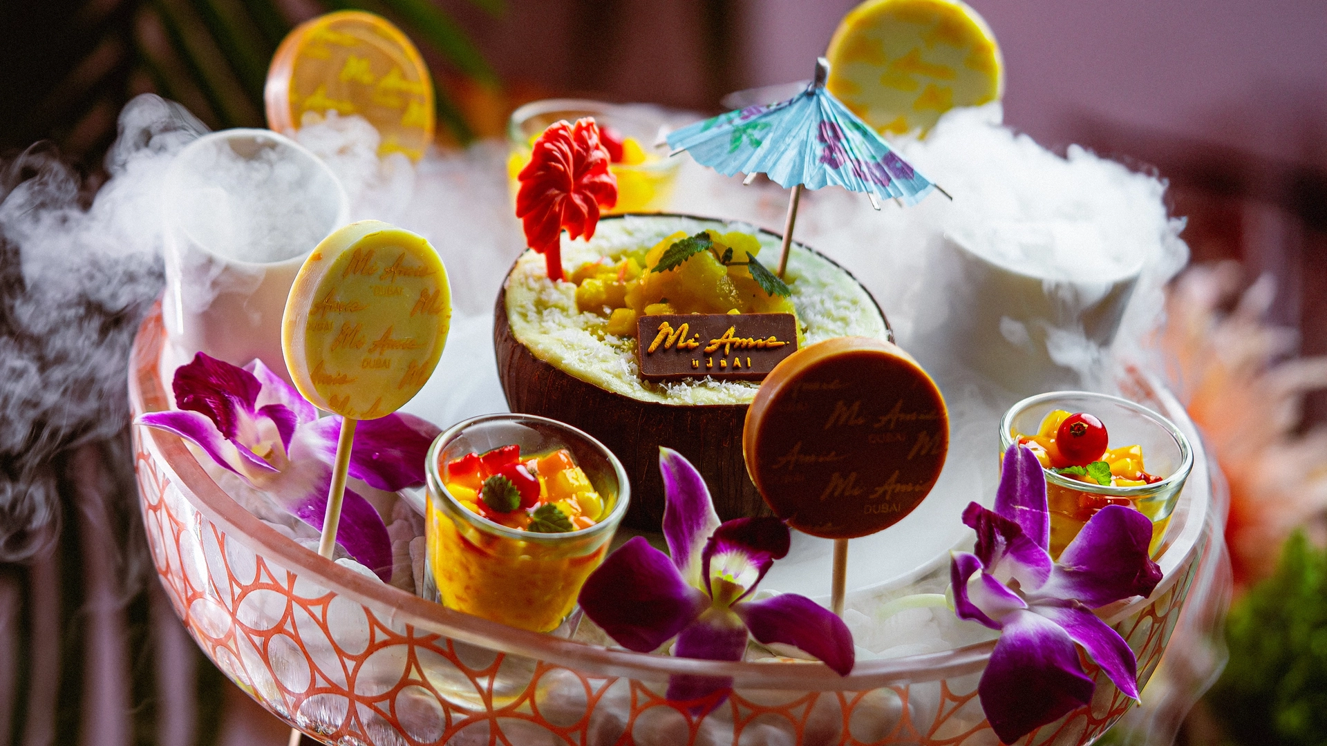 Live theatre and culinary mastery in a rooftop oasis, evoking the essence of Miami.